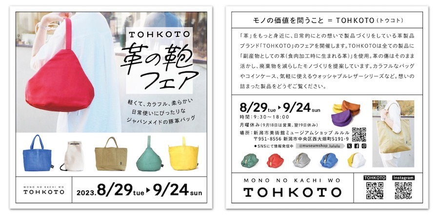「革」をもっと身近に、日常的にとの想いで製品づくりをしている革製品ブランド「TOHKOTO」のフェアを開催します。